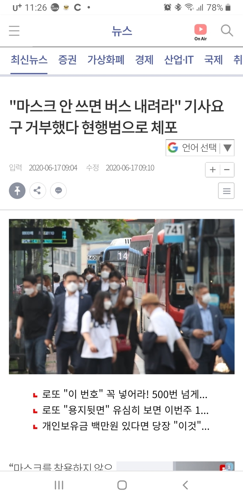 버스기사가 마스크 안써서 내리라는데 말 안듣네