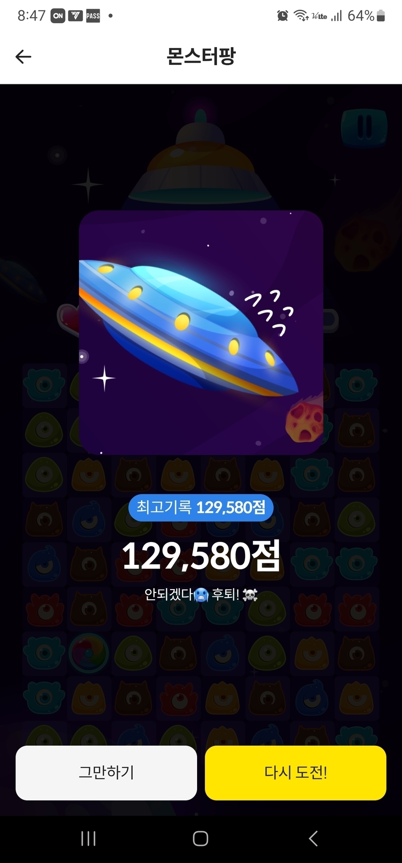 몬스터팡 두번째 십만점 돌파