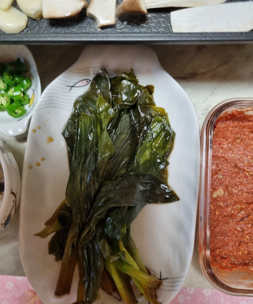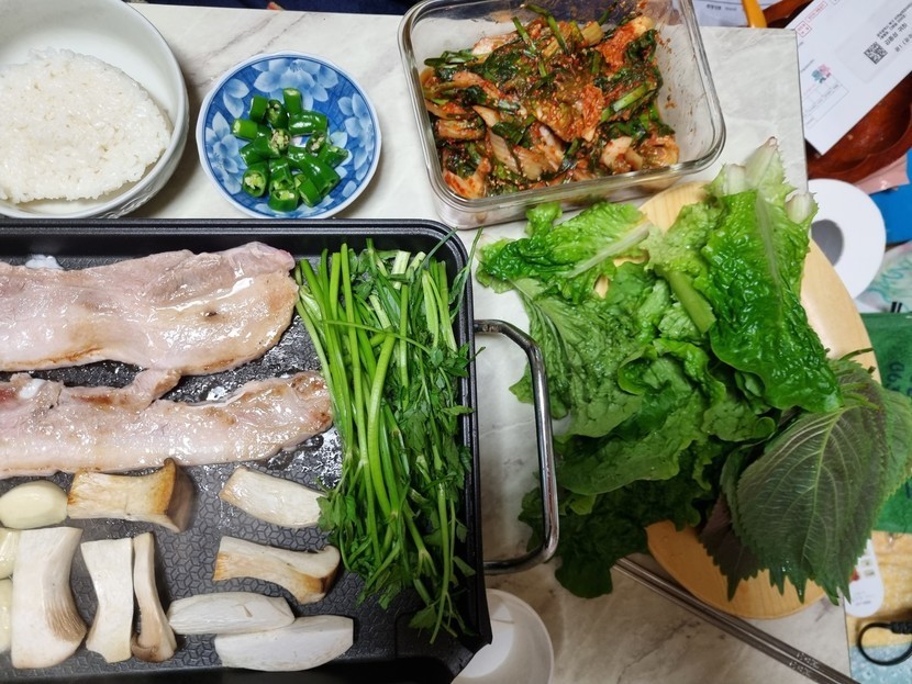 명이나물에 삼겹살 굽굽~~^^