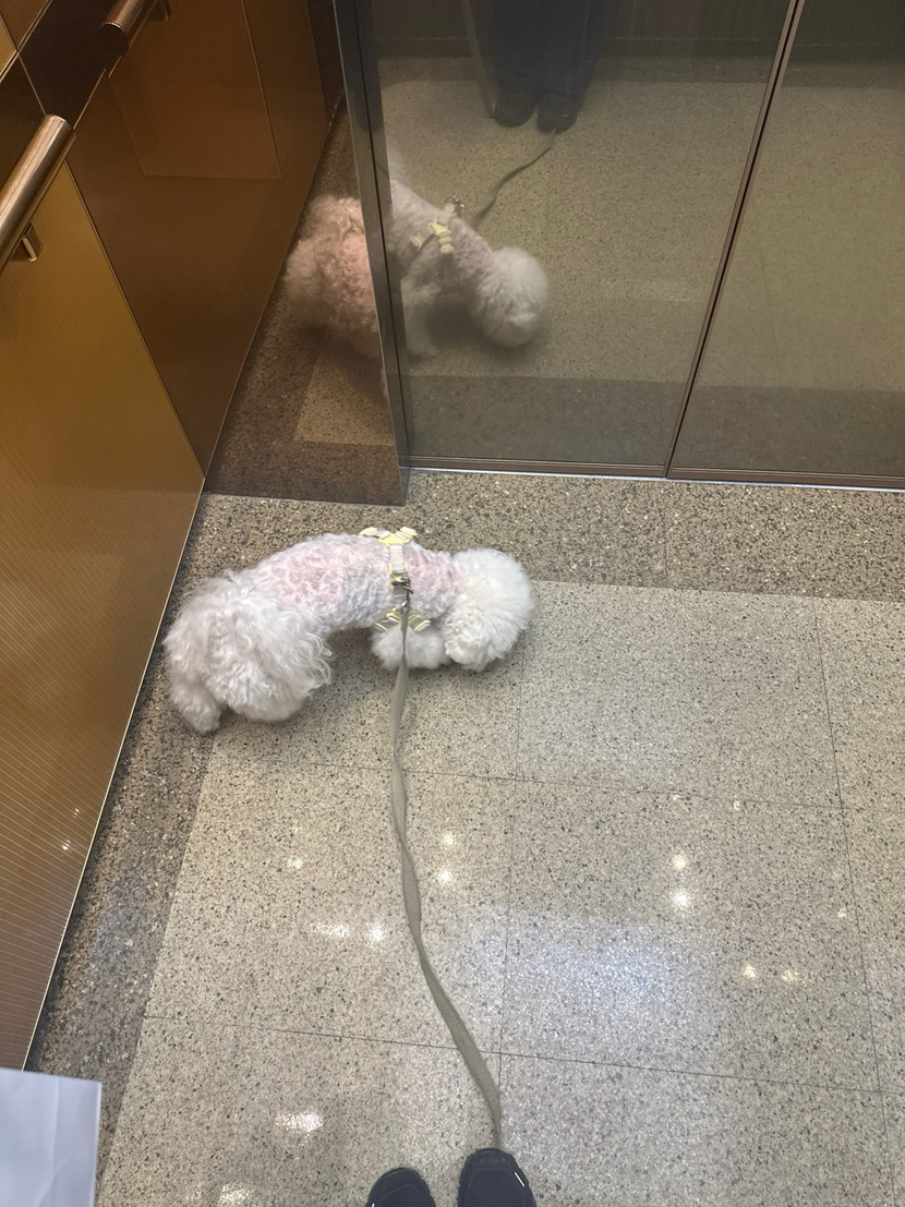 산책 나가고 싶어서 밖에 보는 솜이랑 나왔어요