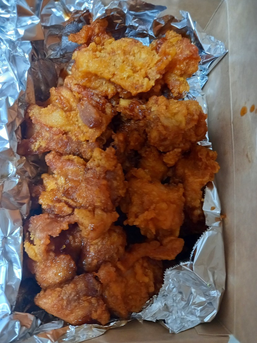 후라이드치킨이랑 간장치킨 먹었어요.