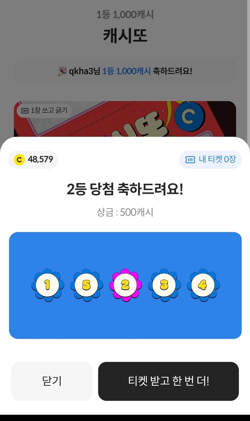 오호 ~ 캐시또 2등 당첨 ~