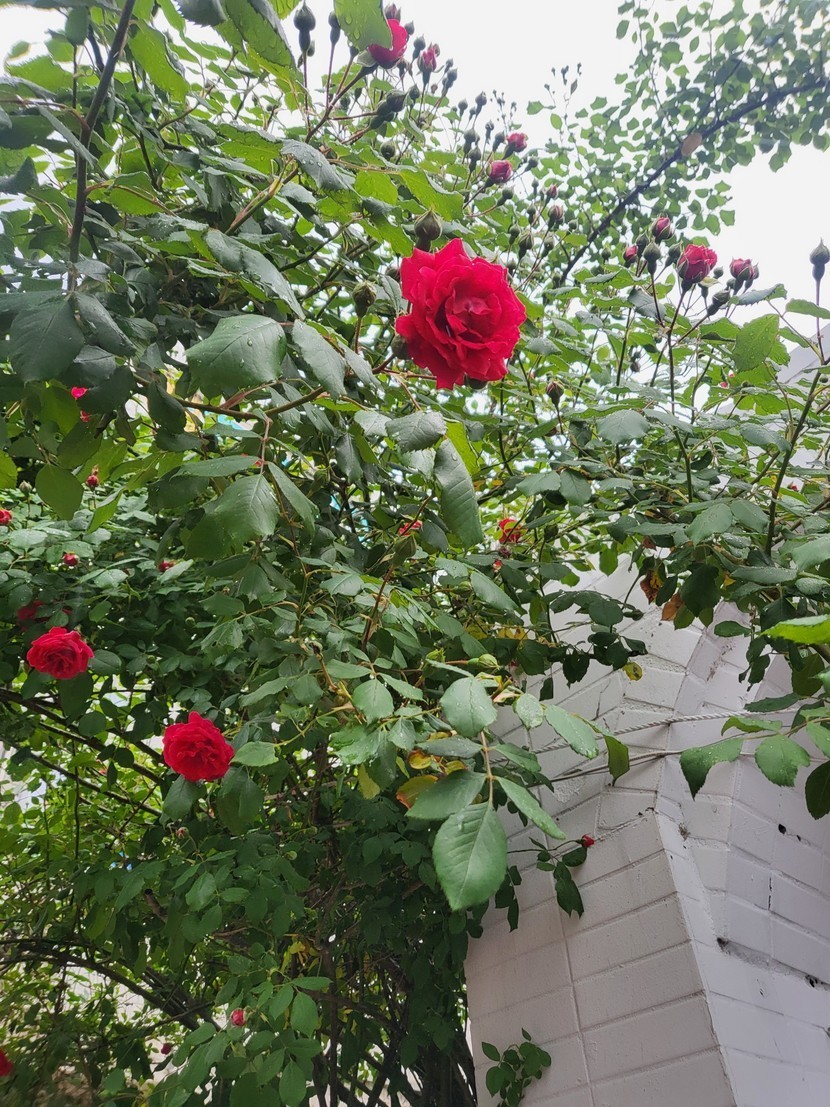 비오는날 남의 집 장미