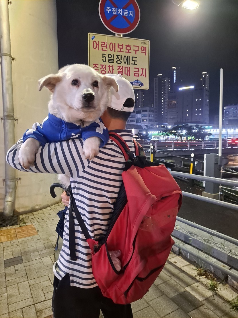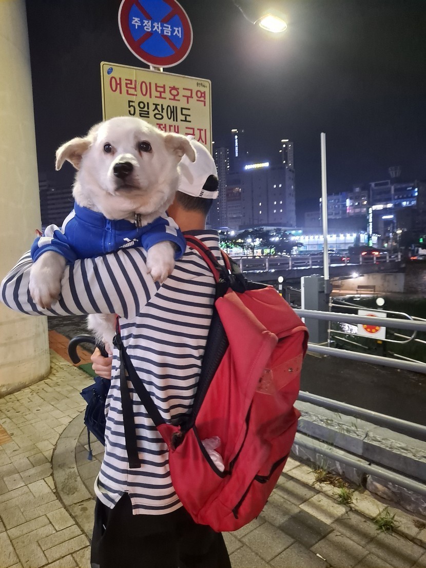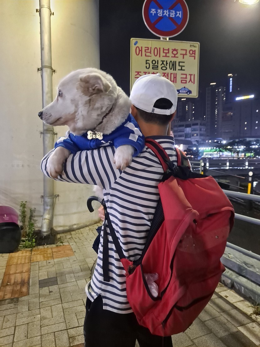 설탕이 들쳐업고 배변하러 나갔네요~~