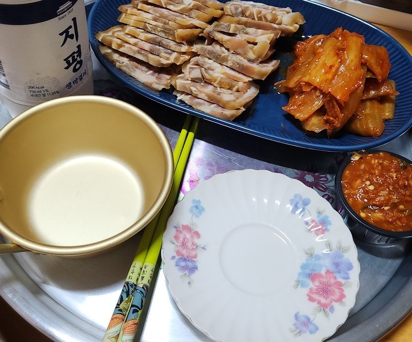 혼술 편육&김치 막걸리 꿀조합🍶