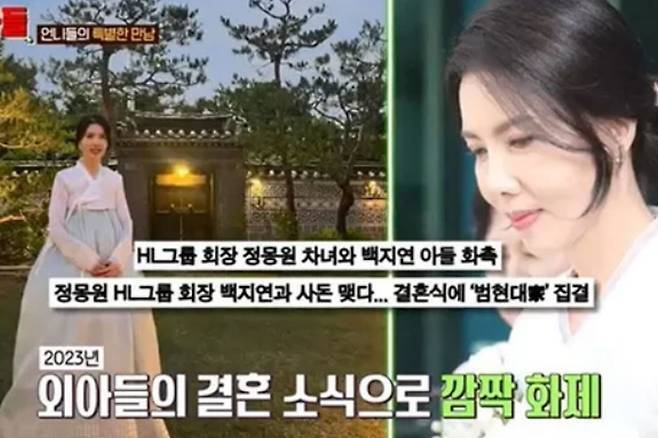 엄청난 재벌가와 사돈을 맺게 된 백지연은 "우리 아들이 그렇게 빨리 결혼할 줄은 몰랐는데 기쁜 날이었다. 며느리가 처음 인사하러 온 날 가슴이 너무 떨렸다. 생방보다 더 떨렸다. 처음 보고 눈물이 왈칵 나더라"라고 밝혔습니다.