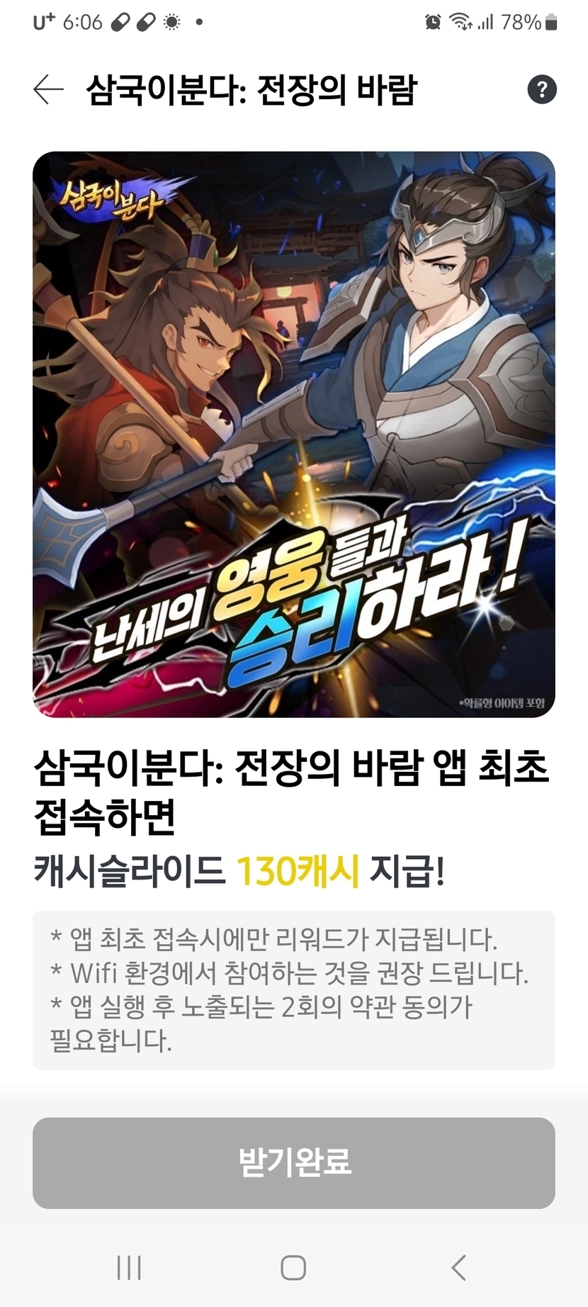 삼국이분다 애7. 최초 접속하고 130캐시