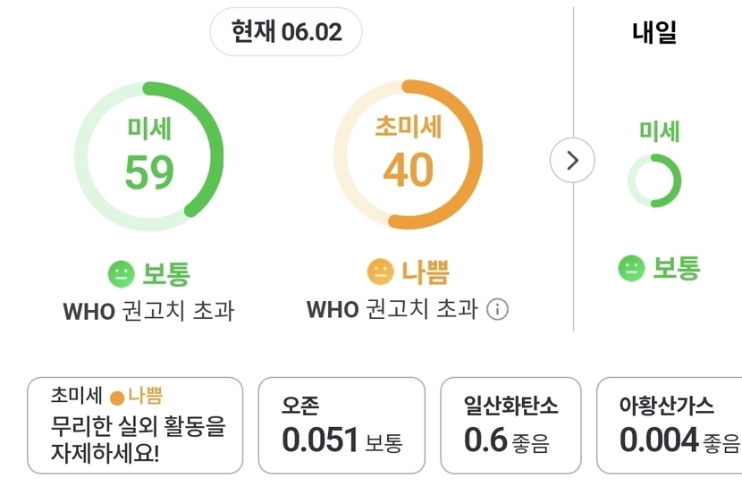 ⚪️ 미세는보통~초미세는 나쁨으로~~