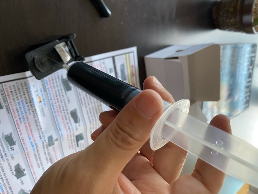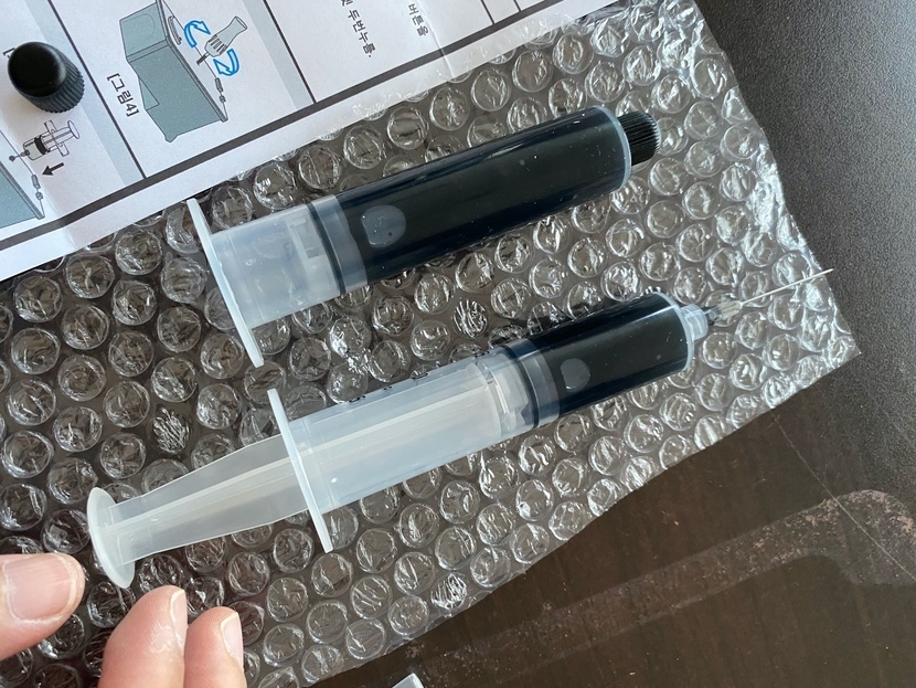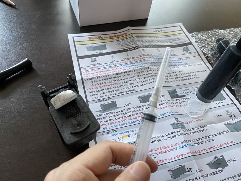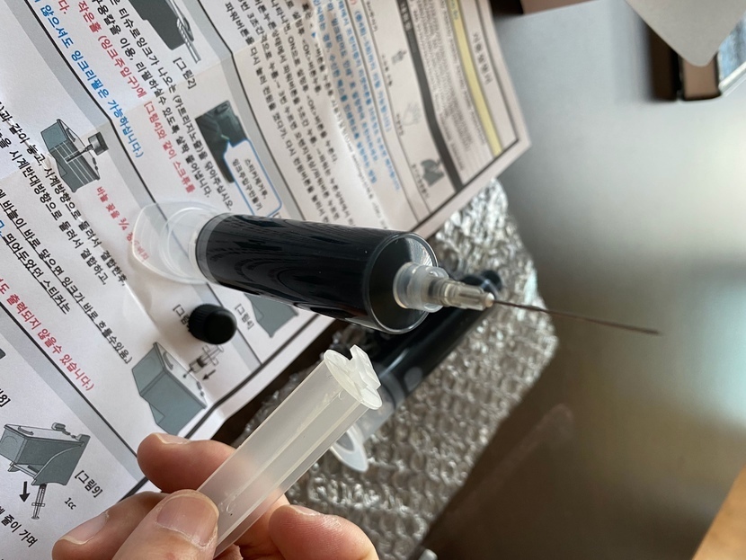 이제는 주사기 등장! 잉크 잔량이 얼마인지 꼽아볼꺼에요.
