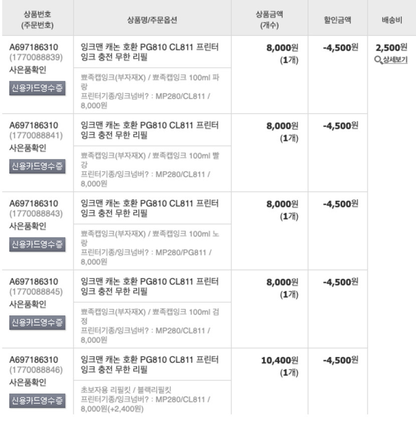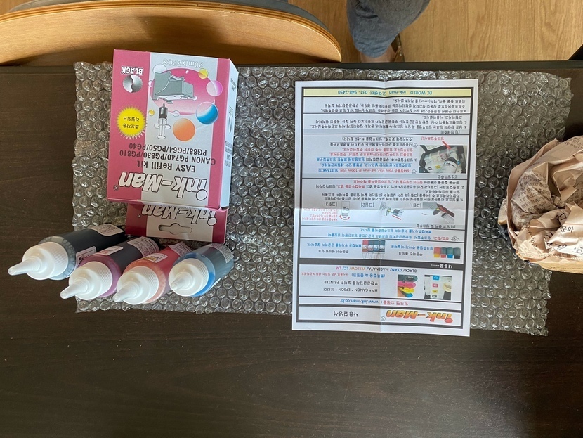 이번에는 새 잉크통을 리필 잉크통으로 만들기 위해 리필킷과 잉크(블랙, 빨,파,노)를 구매했습니다.