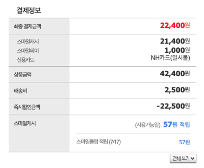 총 결제 금액은 22,400원 카드로 결제했습니다. ㅎ