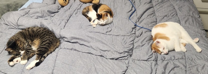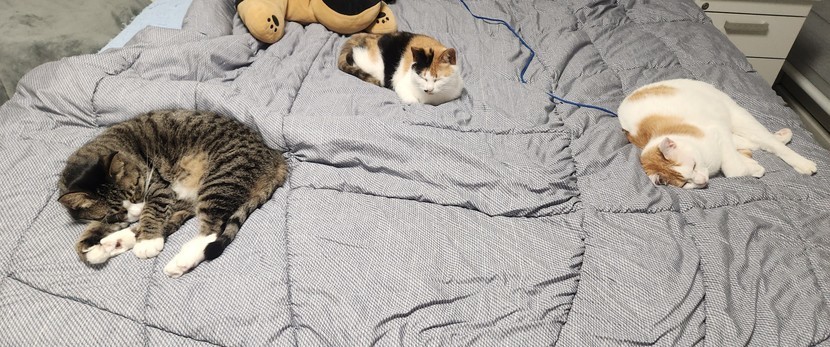 25.06.07 314 읽음 삼냥이~~♡ 😸삼냥이네~🤣 구독하기 67 76 콘텐츠의 수익 16 날이 더워 창문을 다 열어놨더니 바람이 시원하게 통하네요.베란다는 해가들어 더운지 모두 안방 침대위에 모여있는데 각자 멀찍하니 떨어져 있어요.계절에 따른 냥이들의 변화랄까요. 76 0 / 300 입력