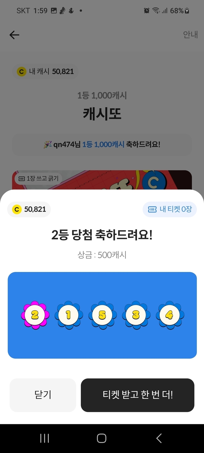 500 백캐시 복권 좋아요
