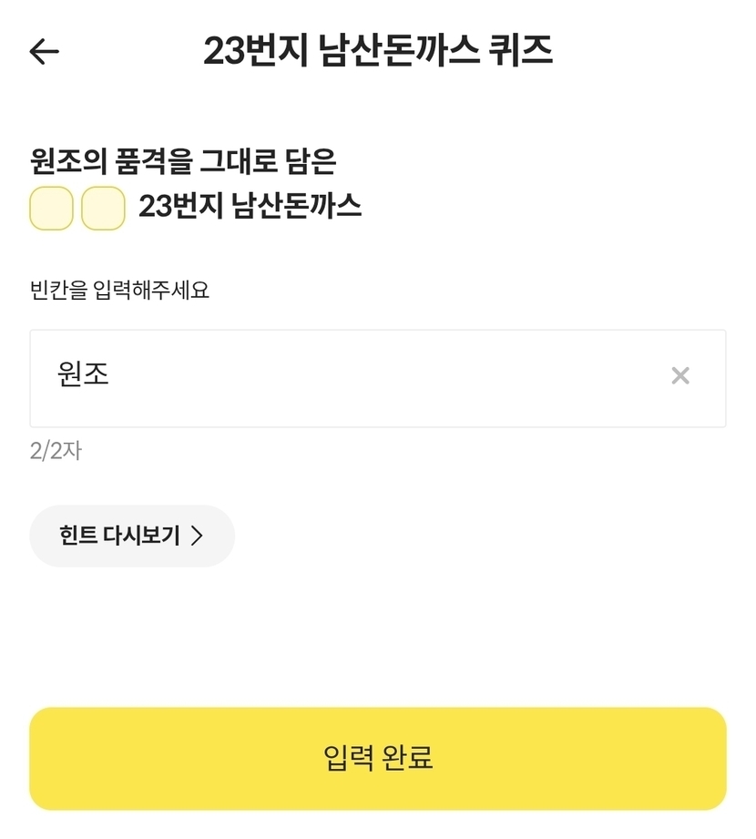 23번지 남산 돈까스 퀴즈