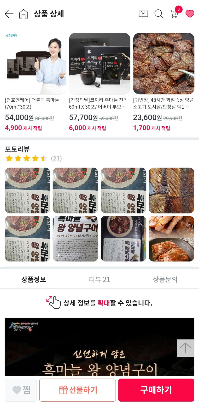 25.07.02 2,365 읽음 흑마늘 왕 양념구이 구입 후기 천상무봉 구독하기 31 38 콘텐츠의 수익 300 소분해서 여러번 먹을 수 있어요^^ 정말 맛있어요^^ 건강에도 도움이 되고요 38 0 / 300 입력