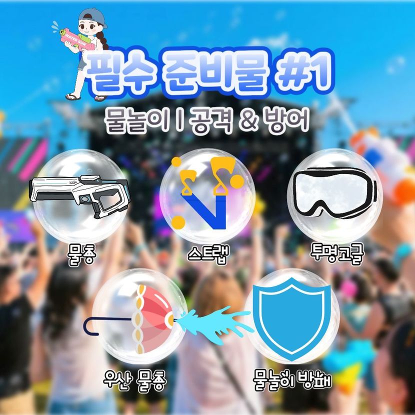 “도대체 무엇부터 챙겨야 할까?” 워터밤 준비물에 대한 고민으로 머리 아프셨던 분들을 위해, 워터밤 고수들이 추천하는 필수템부터 꿀팁까지 모든 것을 완벽하게 정리했습니다.