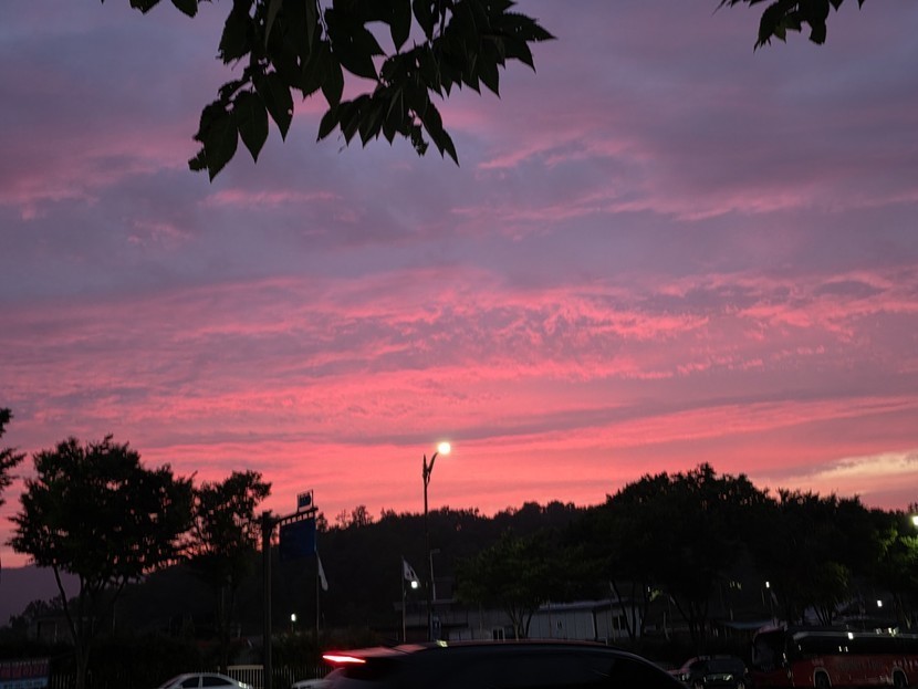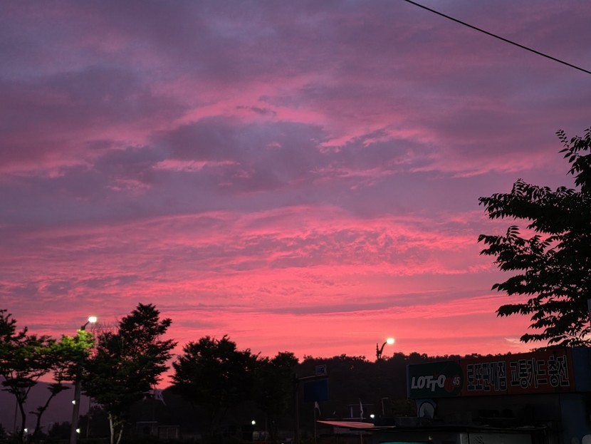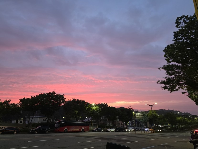 더운여름 해질무렵 빨갛게 물들인 도심에 저녁노을~~