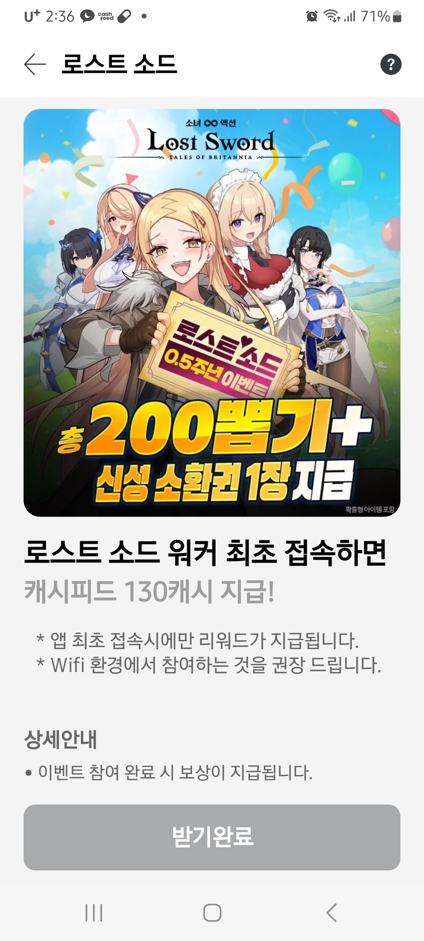 로스트 소드워커 최초 접속하고 130캐시