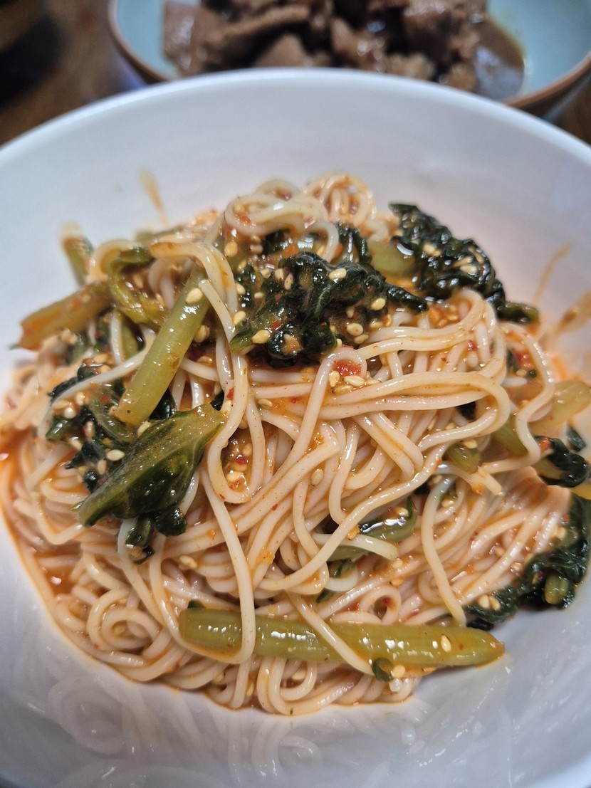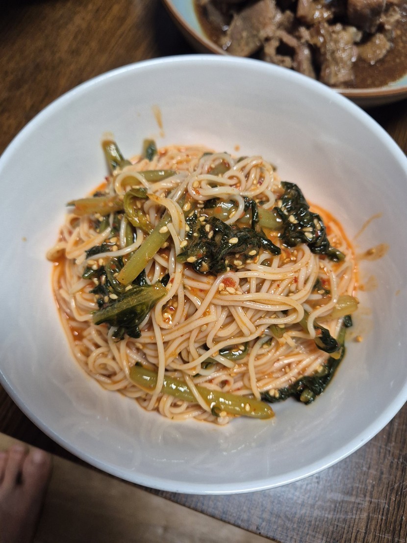 열무 넣고 국수 비벼요