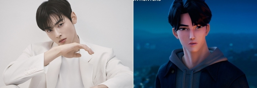 차은우는 넷플릭스 오리지널 애니메이션 '케이팝 데몬 헌터스'의 매기 강 감독이 주인공인 진우의 캐릭터를 구상할 때 참고했다고 밝힌 실제 모델이다. 지난달 20일 공개한 영화는 K팝 스타들이 악령에 맞서는 활약을 그려 전 세계적인 돌풍을 일으키고 있다. 특히 주인공 진우와 그 실제 모델인 차은우의 닮은 꼴 모습도 화제다.