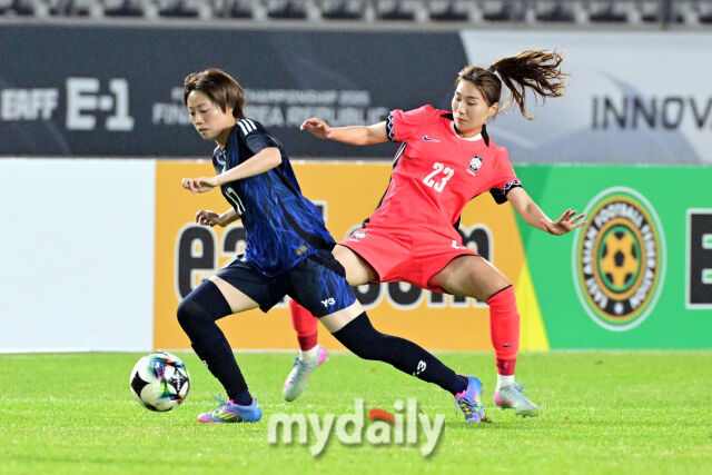 일본은 전반 20분 반격에 나섰다. 칸노가 이금민의 볼을 뺏어냈고, 볼을 넘겨 받은 요시다가 곧바로 오른발 중거리 슈팅을 날렸으나 골대를 살짝 벗어났다.