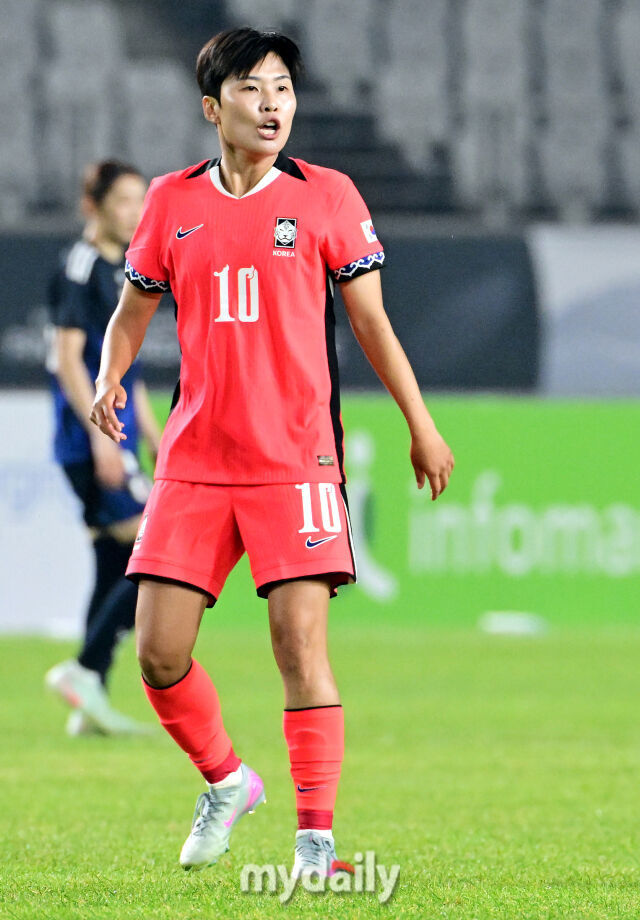 신상우 감독이 이끄는 대한민국 여자축구대표팀이 13일 오후 8시 화성종합경기타운 주 경기장에서 열린 '2025 동아시아축구연맹(EAFF) E-1 챔피언십' 일본과의 2차전 경기에서 전반전을 0-1로 뒤진 채 마무리했다.