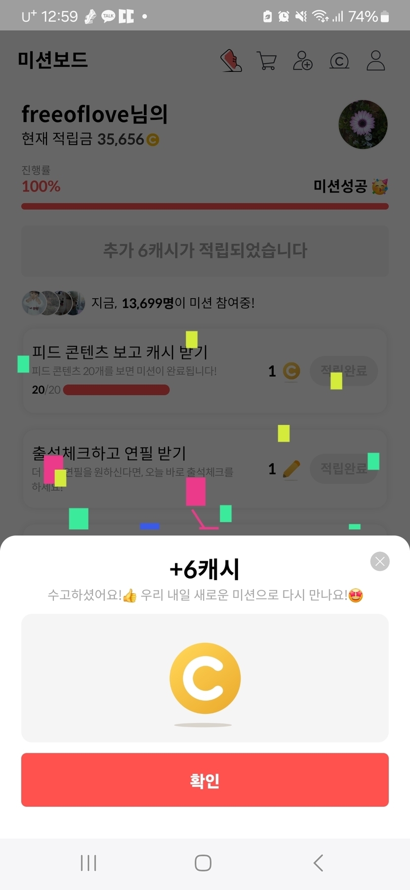 오늘의 미션 완료 칭찬해