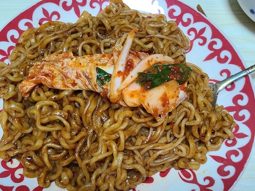 짜장 라면에 국수 몇가닥 넣어서 겉저리에 냠냠~~~