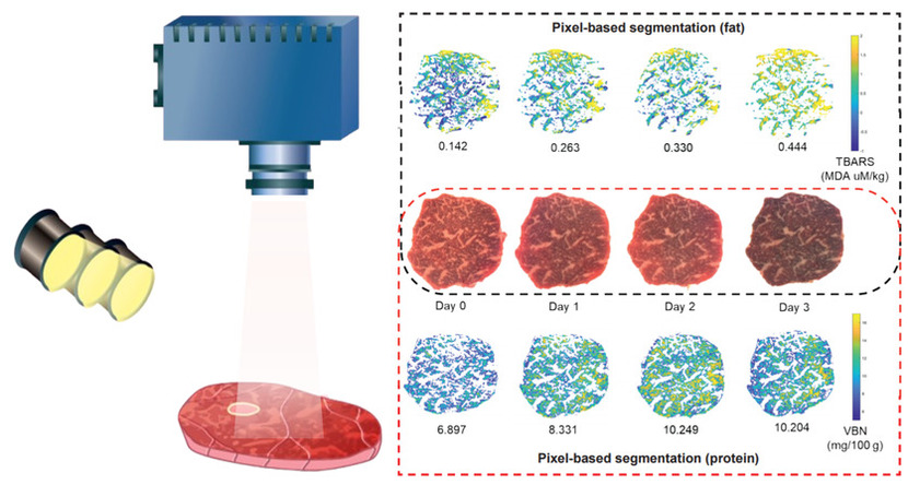 식품연 연구진이 개발한 적외선 초분광 영상 분석 기술은 AI알고리즘이 적용됐다. 이를 활용해 지방 및 단백질 부위의 품질 저하와 관련된 미세 신호를 정량적으로 분석하고 영상으로 시각화할 수 있다.
