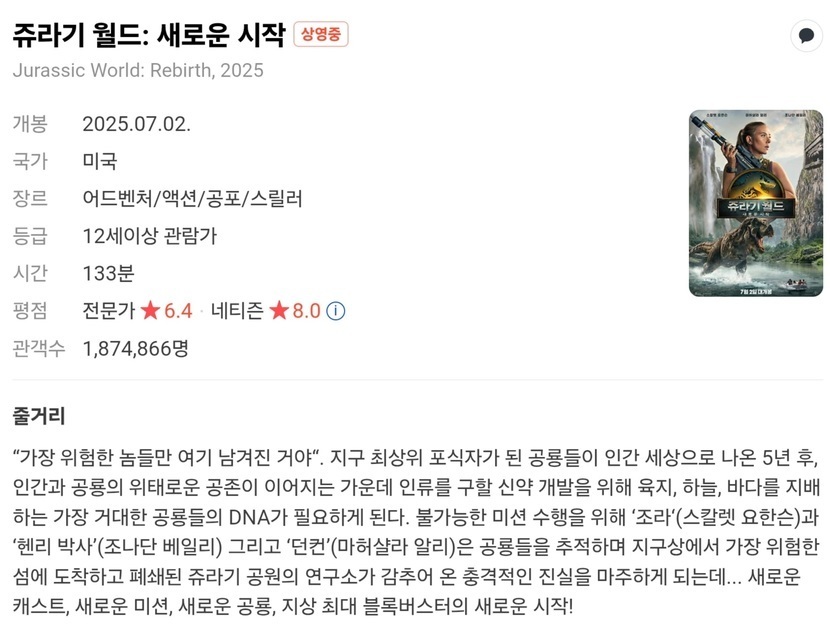 영화 쥬라기 월드 - 새로운시작
