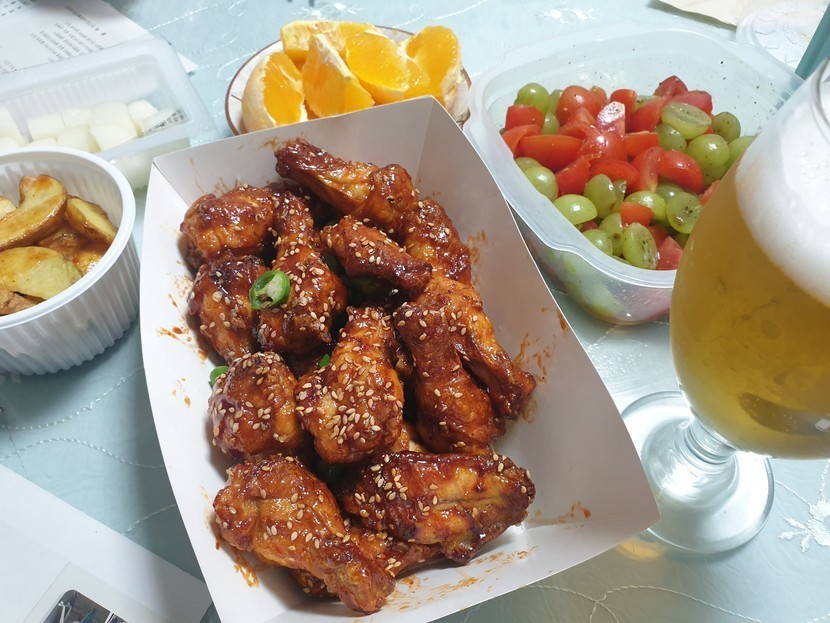 치킨에 한잣