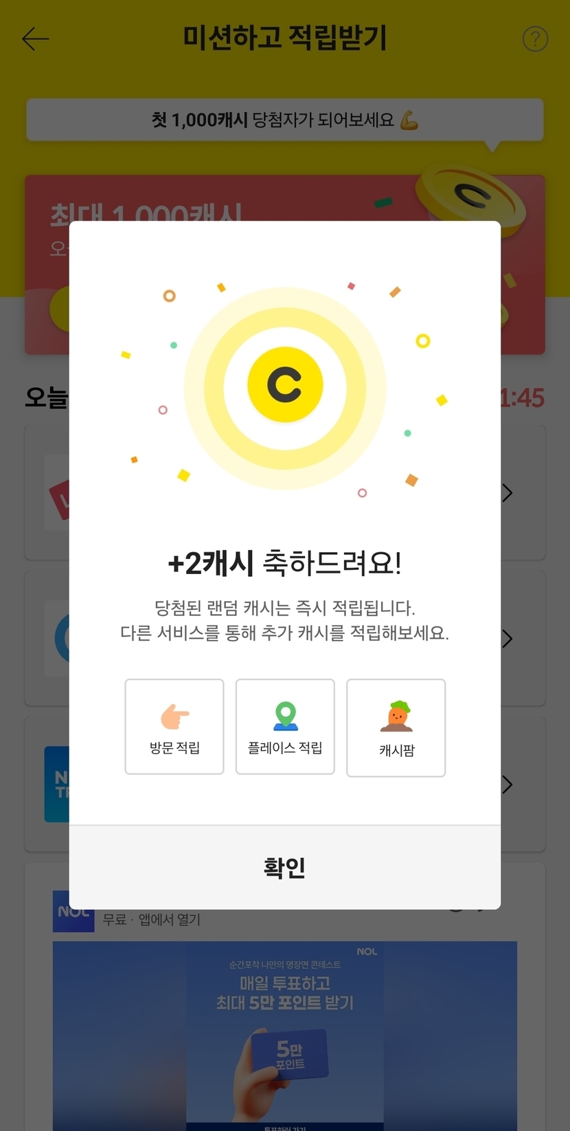 25년 7월 23일 미션하고 적립받기 완료