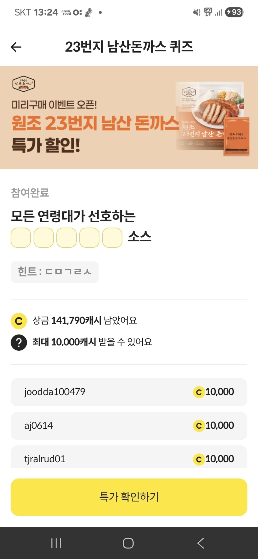23번지 남산돈까스 퀴즈