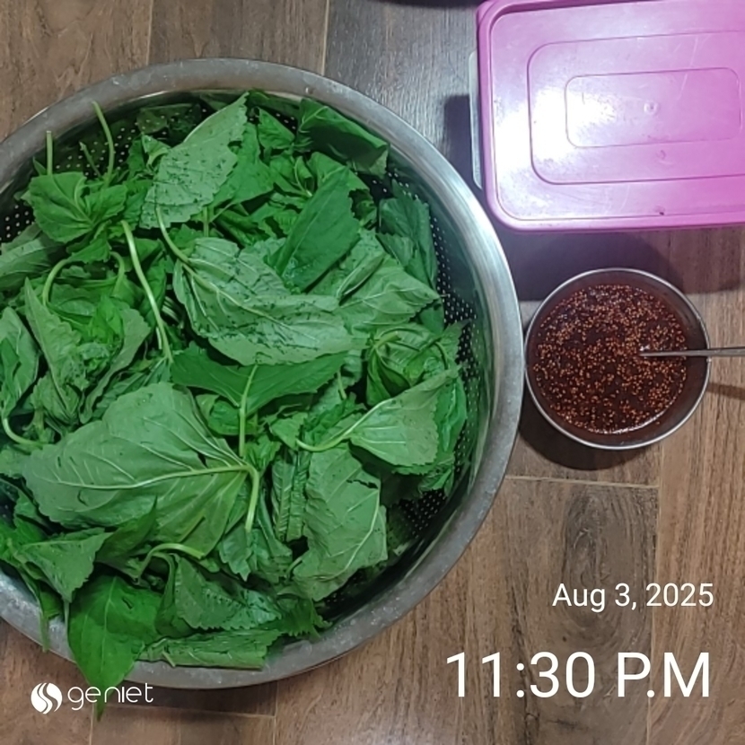 광주집에 와 깻잎씻어 물기 빼고