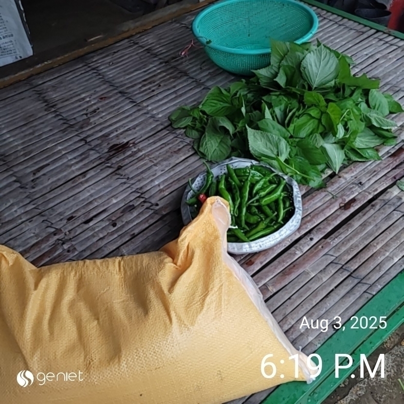 밑반찬 몇가지 고추 깻잎 쌀 싸가지고