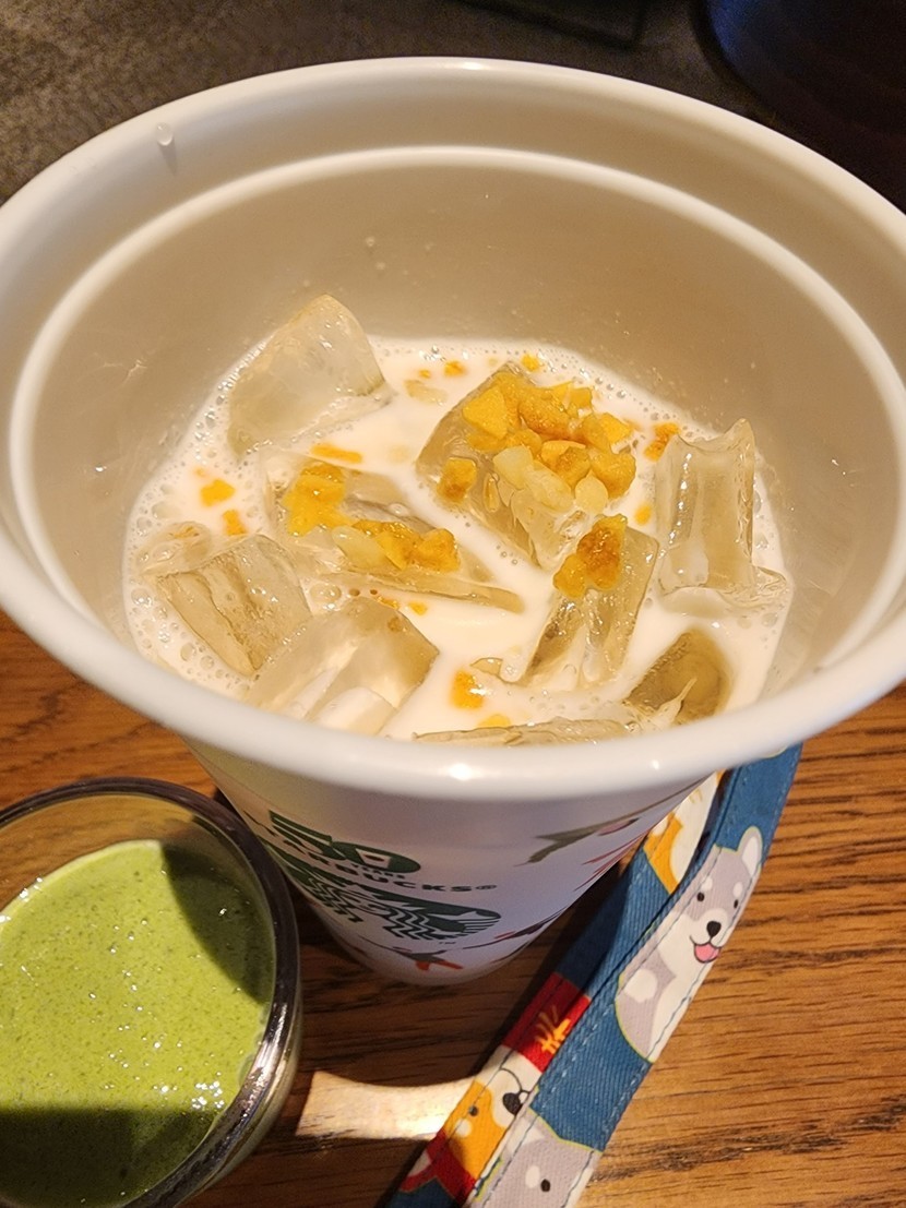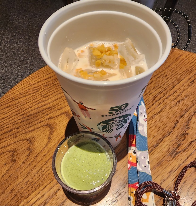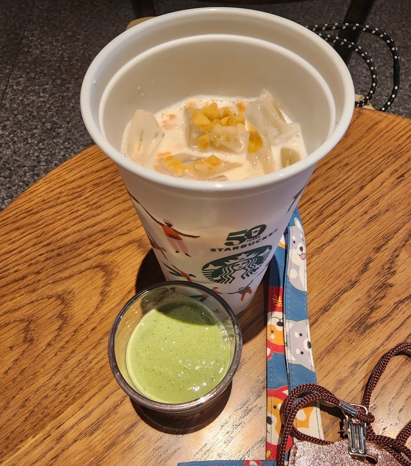 25.08.05 456 읽음 점심 먹고 커피 한잔 하러 스벅 갔어요^^ 나는 나 구독하기 95 90 콘텐츠의 수익 15 "아이스 로스티드 마카다미아 라떼" 신규?음료 마셨어요..한번 마셔본걸로 만족 ㅋㅋ 이후에는 안 마실 것 같아요 ㅎㅎ향이 저랑 잘 안맞 ㅋㅋㅋ 제주말차요거트 블렌디드 시음 하라고 하더라구요?^^스벅에서 시음 오랜만에 하는듯 해요.제주말차요거트 블렌디드 생각보다 저는 괜찮더라구요.다음에 한번 마셔 봐야 겠어요^^ 요것만 시음하고 마카다미아 라떼는 포장 해 왔네요.오후에 천천히 마셔야 겠어요. 90 0 / 300 입력