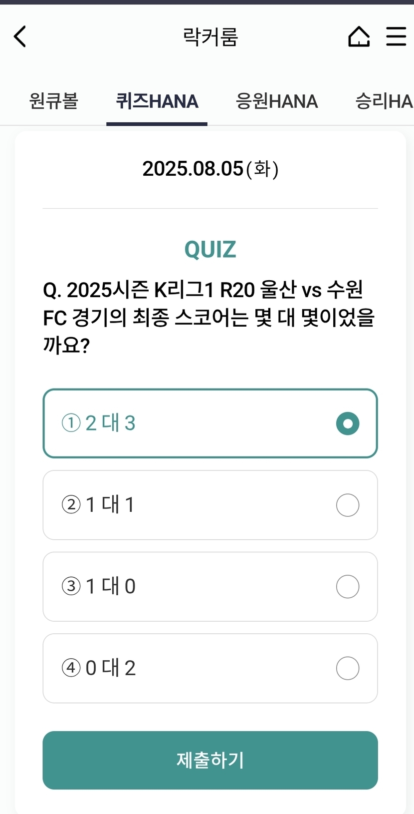 ๋งค์ผ๋งค์ผ ํด์ฆHANA์ ์์HANA ๋ชจ๋ ์ฐธ๊ฐํด๋ณด์ธ์.