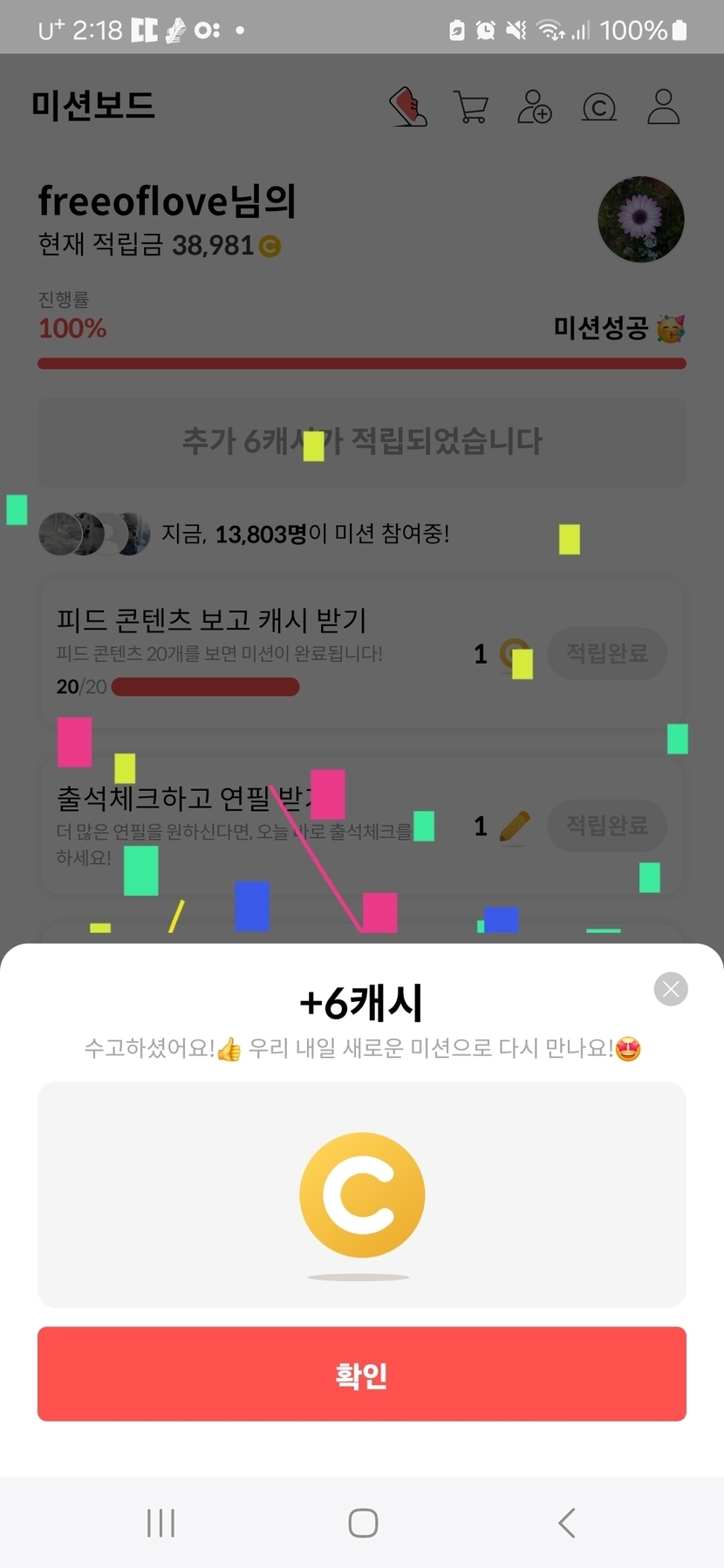 오늘의 미션완료 칭찬해