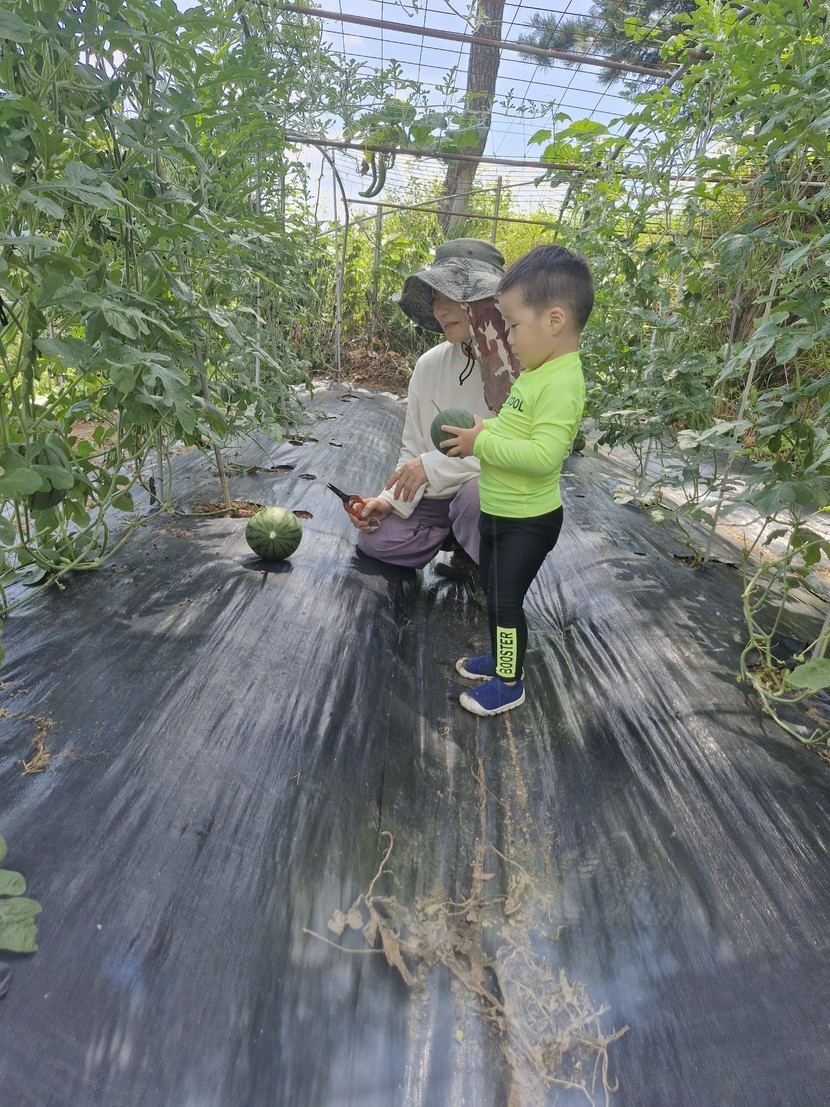 25.08.09 232 읽음 산골농부와 손자 그러려니해 구독하기 5 13 콘텐츠의 수익 8 손자가 와서 애플수박 땁니다.가위를 들고서툴지만 딸깍~~~^^어린것도 따겠다고결국 작은것도 2개나 딸깍~~😅 13 0 / 300 입력