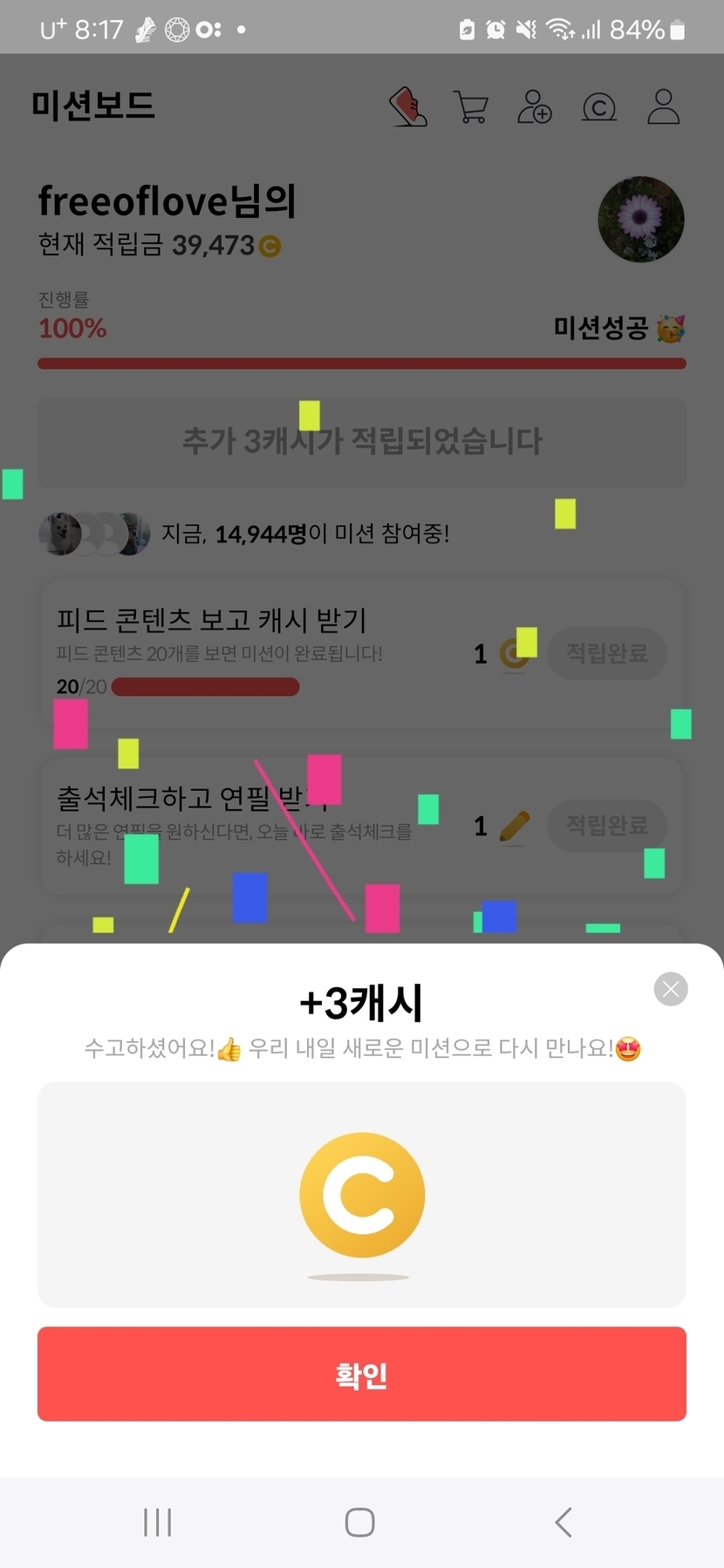 오늘의 미션완료 칭찬해