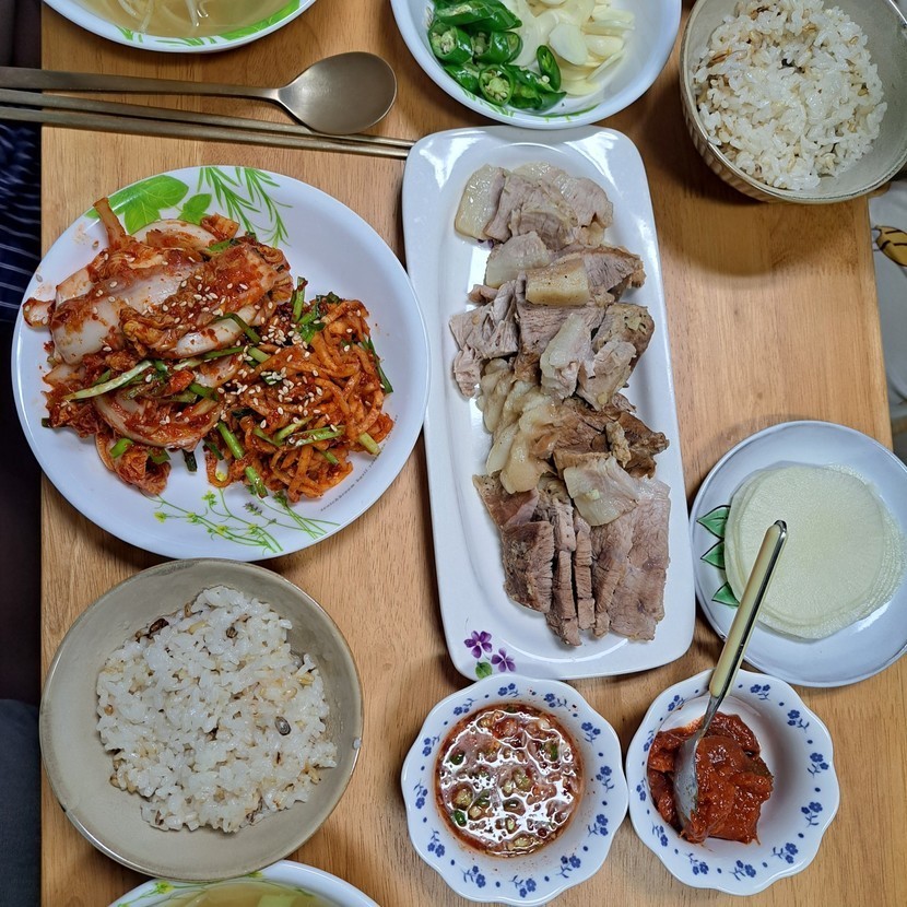 25.08.09 161 읽음 물없이 수육 만들었어요~ 해피망고♡ 구독하기 24 29 콘텐츠의 수익 3 물없이 보쌈 만들어 저녁으로 맛있게 먹었어요.양파 대파 깔고고기에 마늘 바르고 후추도 솔솔~생채와 알배기 휘리릭 버무려 냐미~~망고찌도 츄르 냐미~~ㅎㅎ...행복한 토욜밤 되세요~❣️❣️❣️❣️❣️❣️❣️ 29 0 / 300 입력