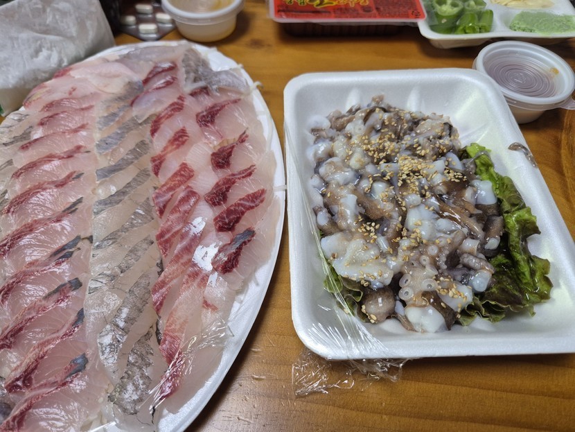 늦은 밤에 산낙지랑 우럭으로 한잔하고 마무리합니다