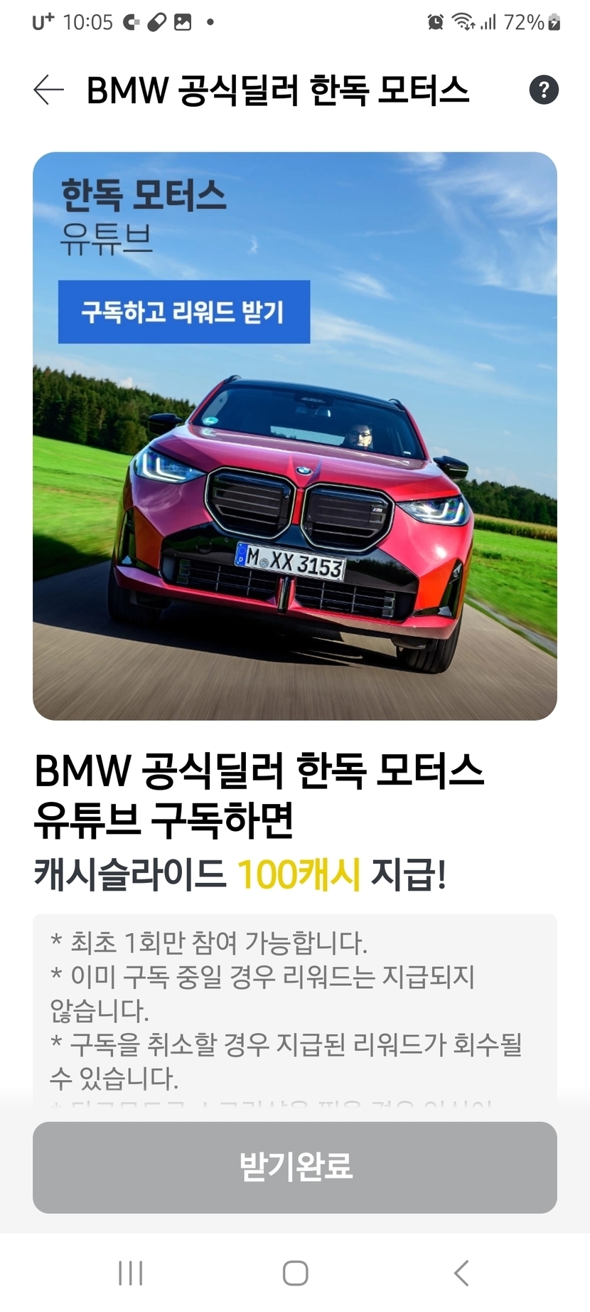BMW 공식딜러. 유튜브 구독 100캐시