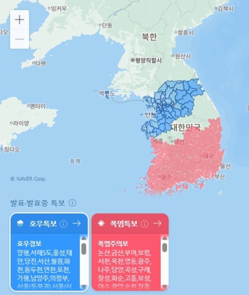 날씨도 남과 북으로