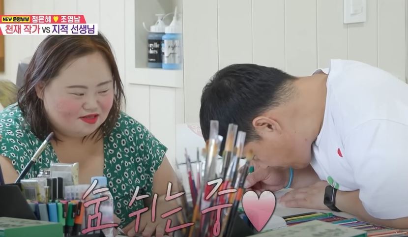 그림 작가 정은혜(34) 씨와 그의 남편 조영남(42) 씨다. 정 씨는 드라마 '우리들의 블루스'에도 출연했던 유명 작가다. 정 씨와 조 씨는 지난 5월 결혼한 신혼부부다. 정 씨는 다운증후군, 조 씨는 지적장애를 앓고 있다. 정 씨는 드라마에서도 배우 한지민의 다운증후군 동생 역할을 맡으며 자신을 있는 그대로 보여줬다.