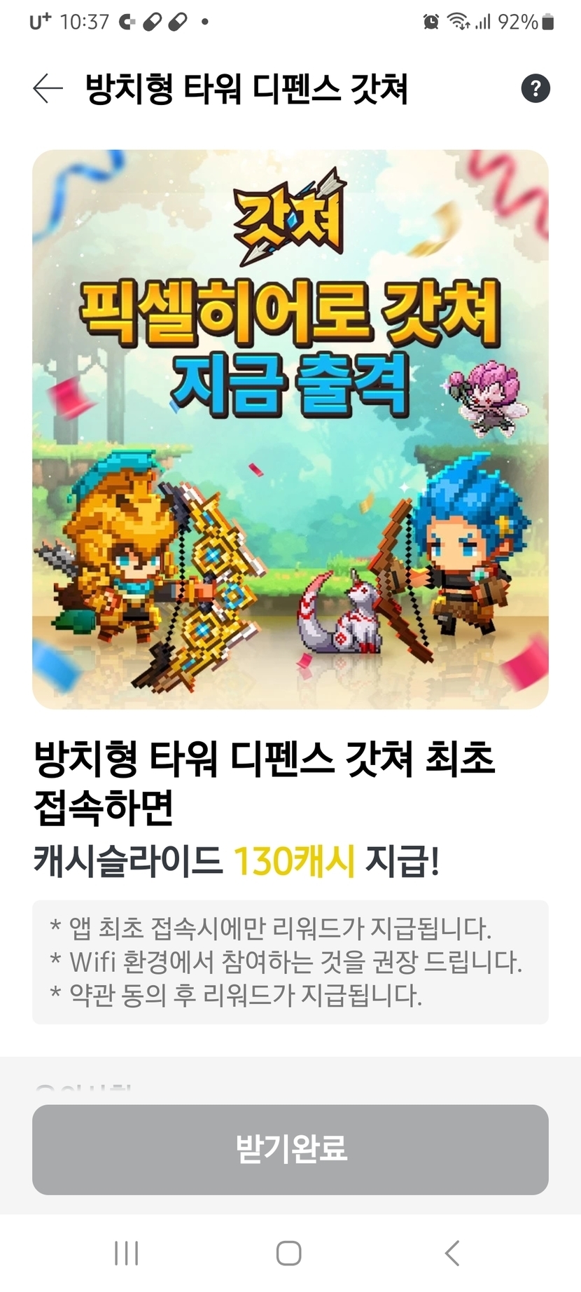 방치형 타워 디펜스 최초 접속하고 130캐시