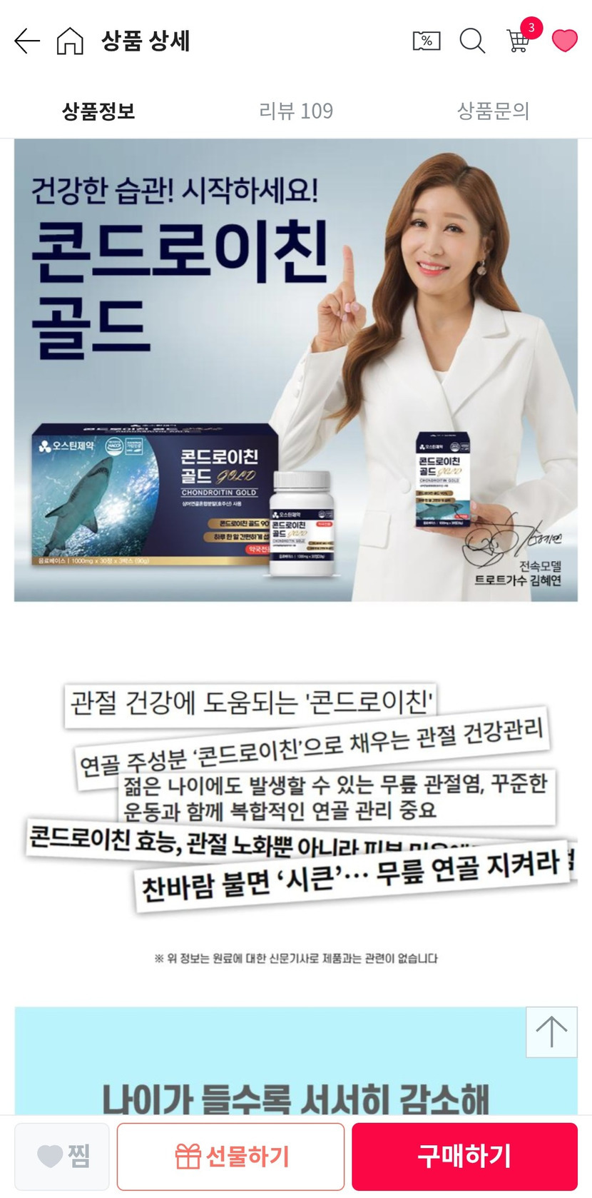 25.08.21 3,601 읽음 골드 콘드로이친 구입후기...작은 크기 먹기딱 좋아요. 천상무봉 구독하기 23 41 콘텐츠의 수익 372 상아연골골드 콘드로이친....건강관리는 건강할때부터 시작해야 늦지 않습니다. 1년가까이 계속 복용중입니다. 41 0 / 300 입력