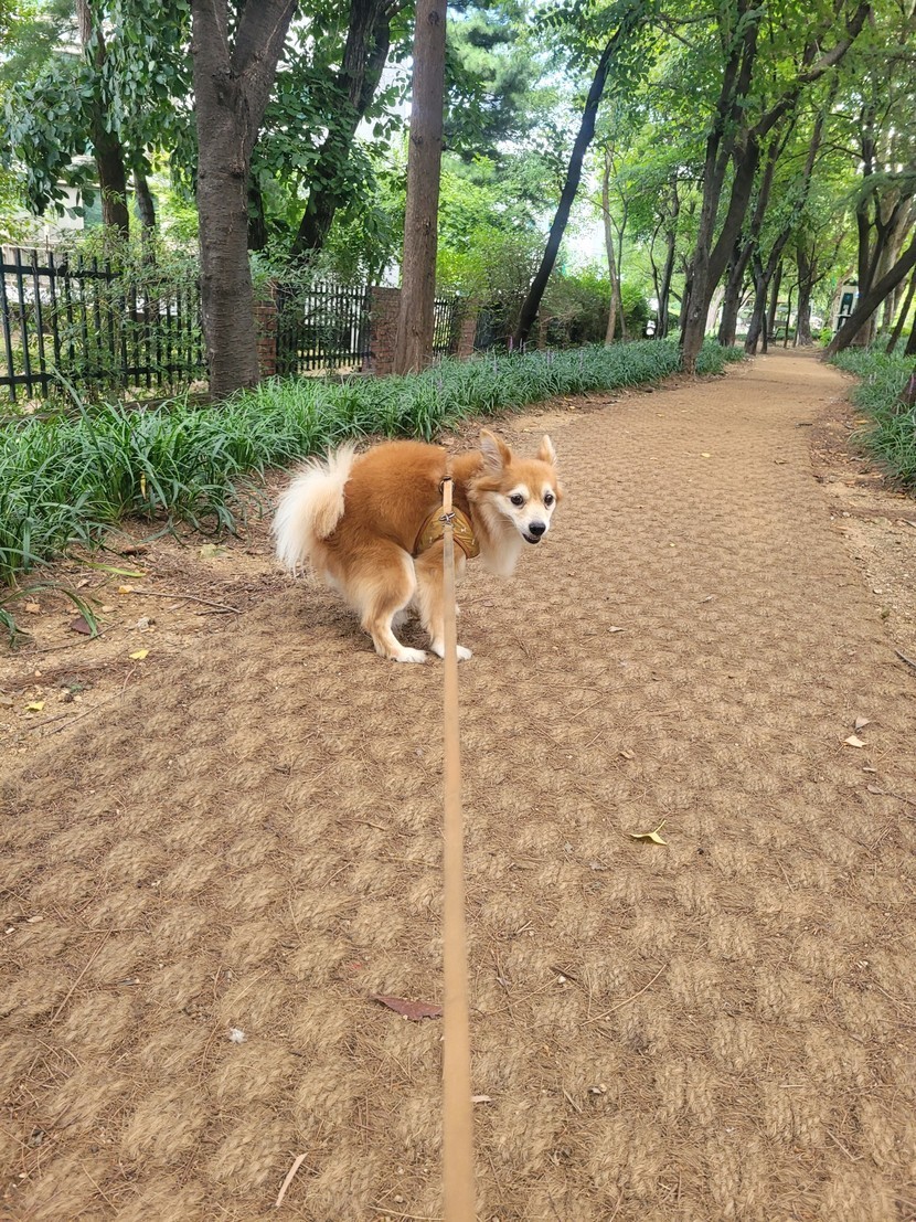 산책중 응가하려고 폼을 잡더니 챙피한지..패스하고 산책을 즐기는 울똘군