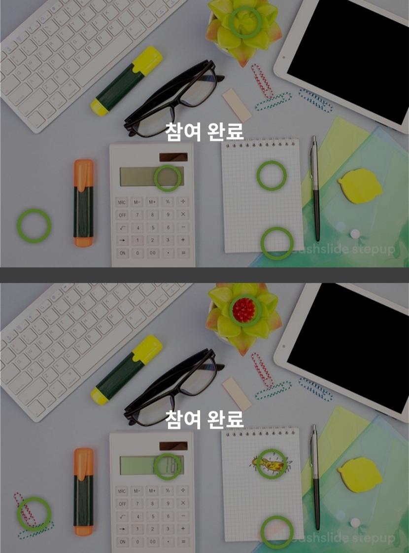 책상위사무용품 틀린그림찾기 캐시피드