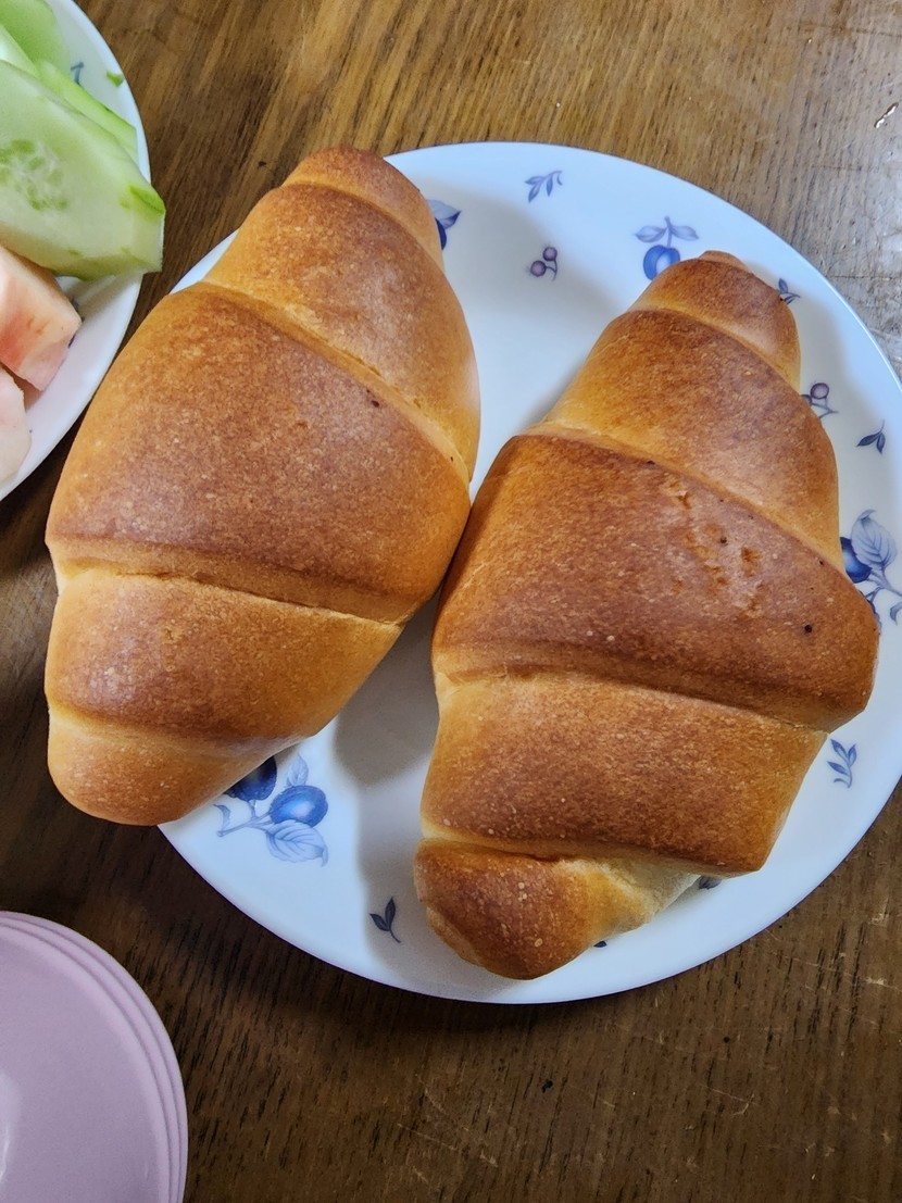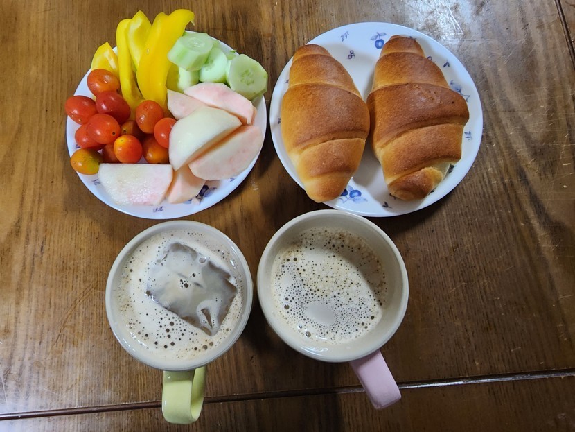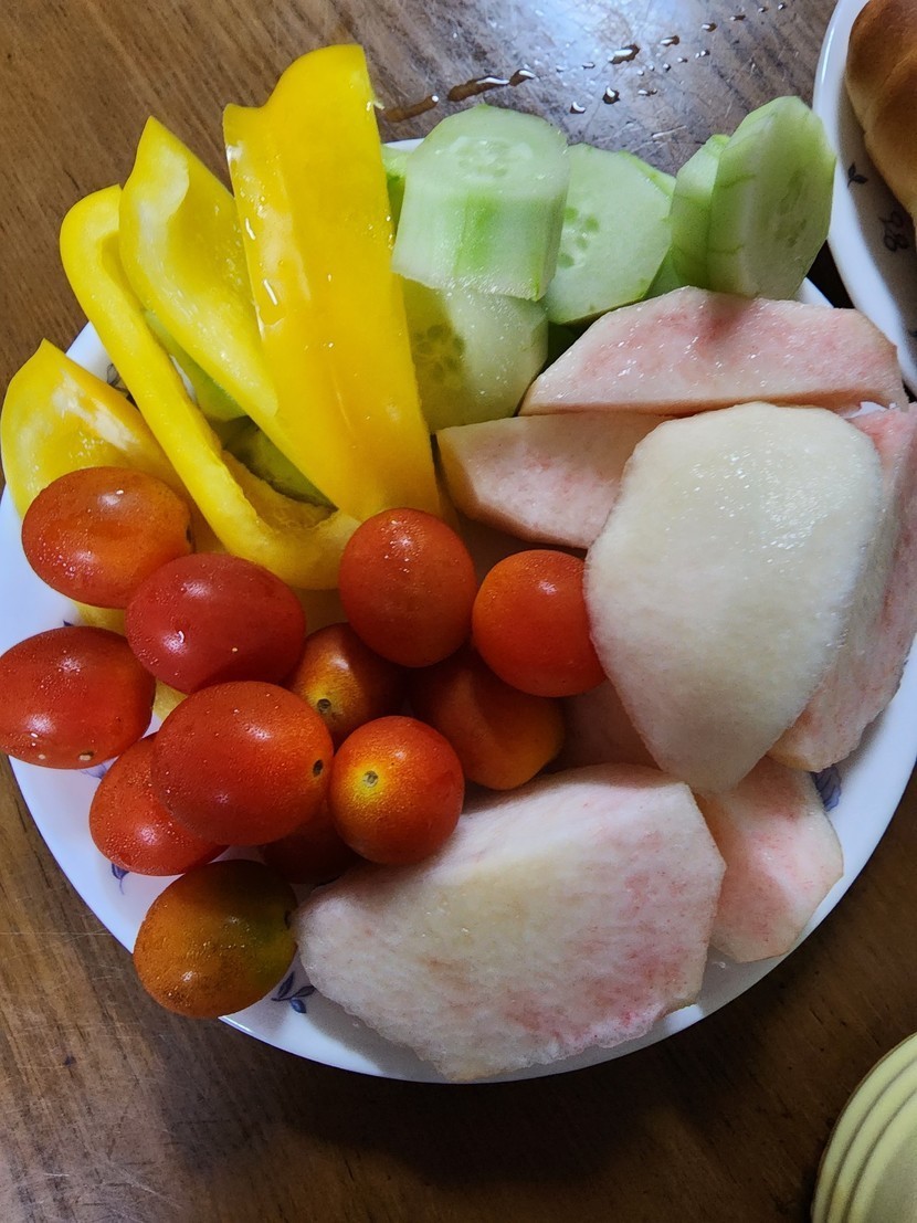 금요일 아침은 소금빵과 과일 그리고 야채